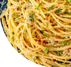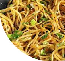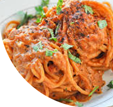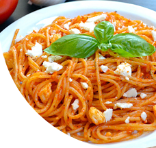 Spaghetti Marinara sauce, cream, spices, green onions and green beans with cheese